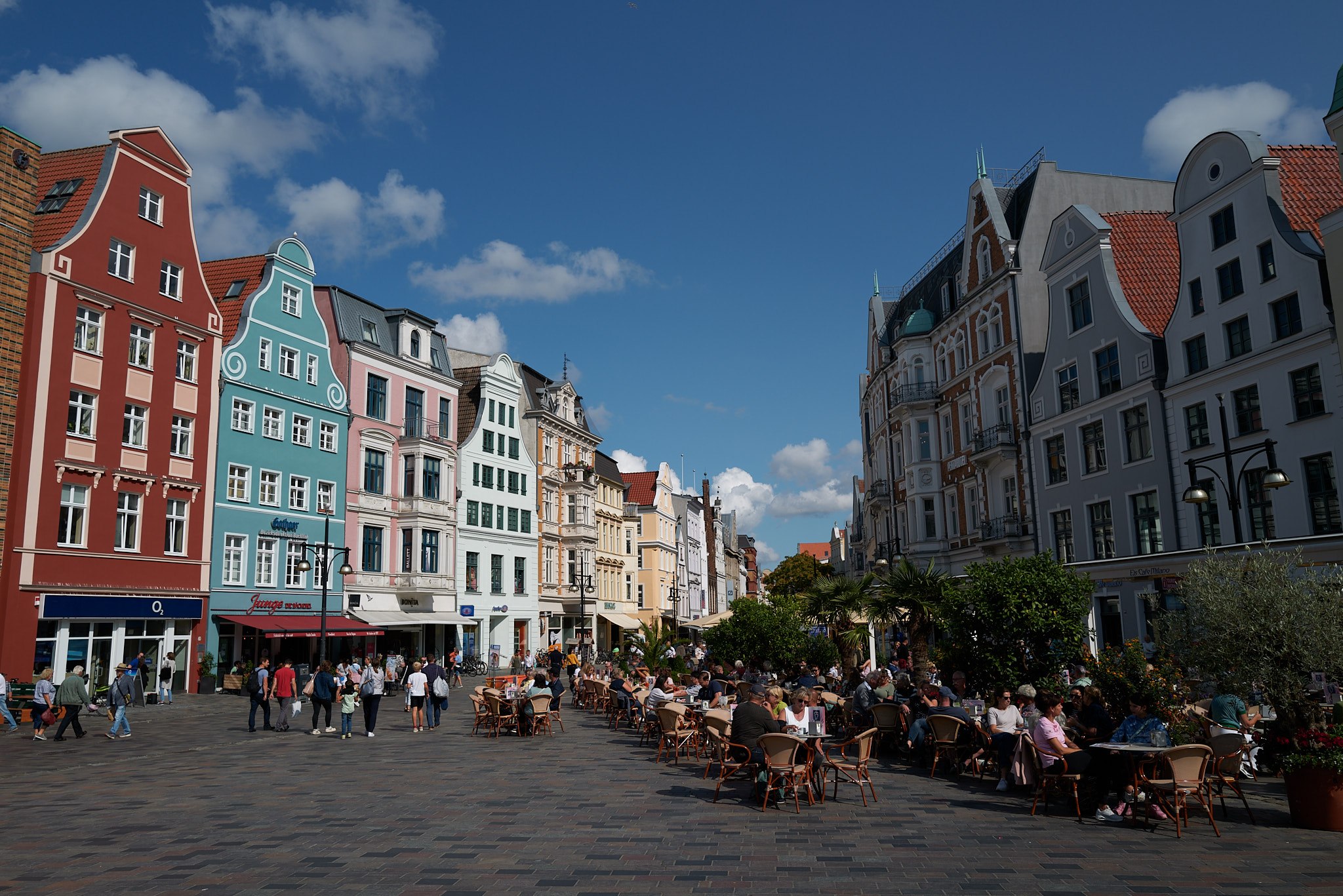 Vandaag hebben we de hanzestad Rostock bezocht. De architectuur is hier vergelijkbaar met Lübeck en Wismar. Het valt ons op dat de staat van onderhoud van de panden ook hier weer zo goed is als we eerder hebben gezien. En de panden die een opknapbeurt nodig hebben staan al in de steigers en zijn er werklui bezig.
