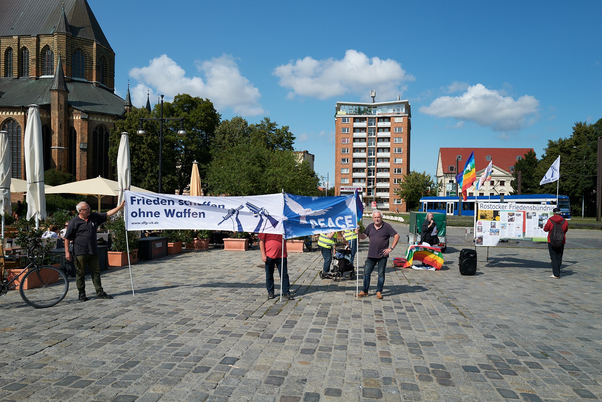 Op het plein voor het raadhuis is er een kleine demonstratie aan de gang voor vredesonderhandelingen in plaats van wapens leveren aan Oekraïne. We weten dat de wapenleveranties politiek gevoelig liggen in Duitsland. Het zou mooi zijn als dit een reële oplossing is, maar ik ben bang dat het voorlopig nog wishfull thinking is.