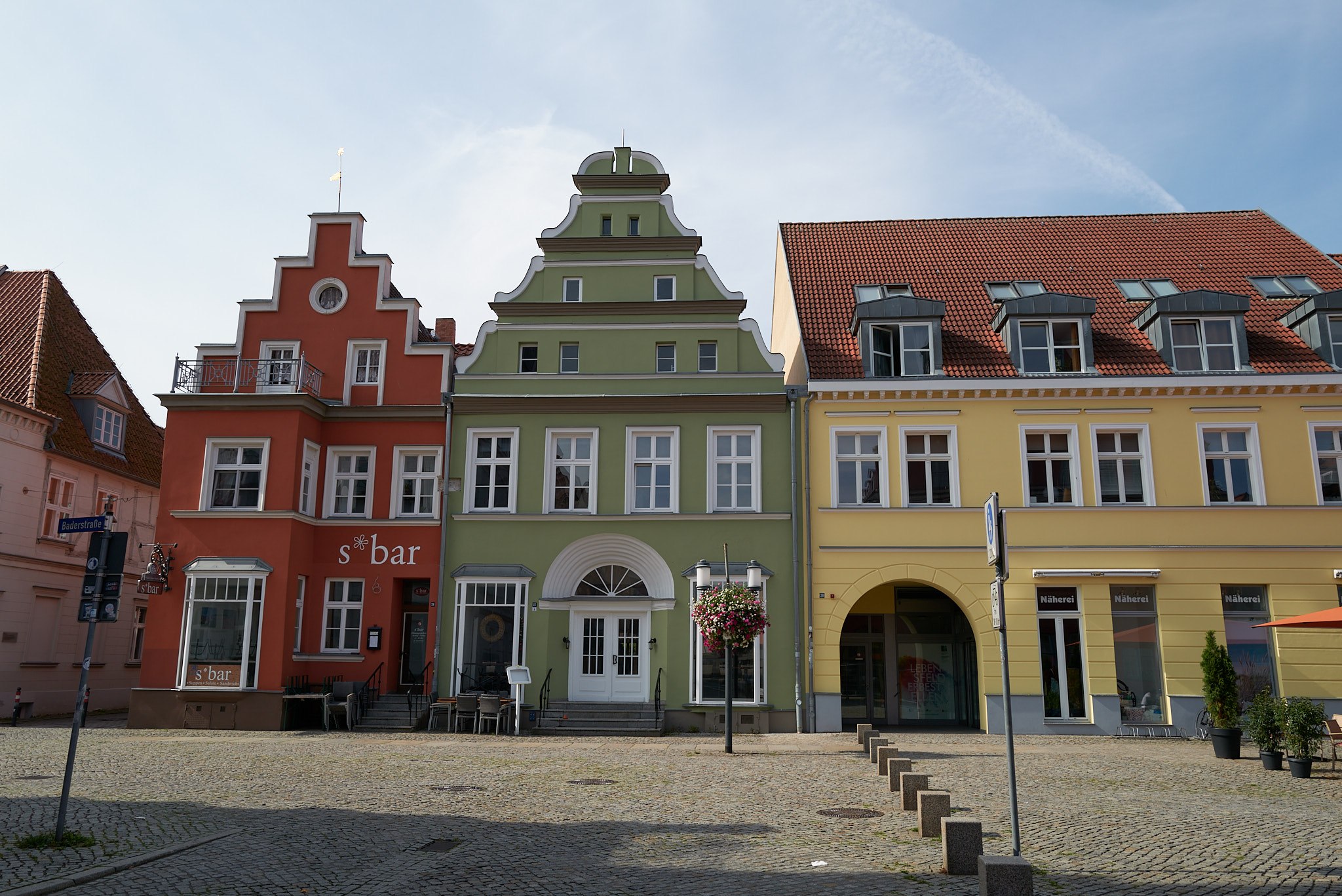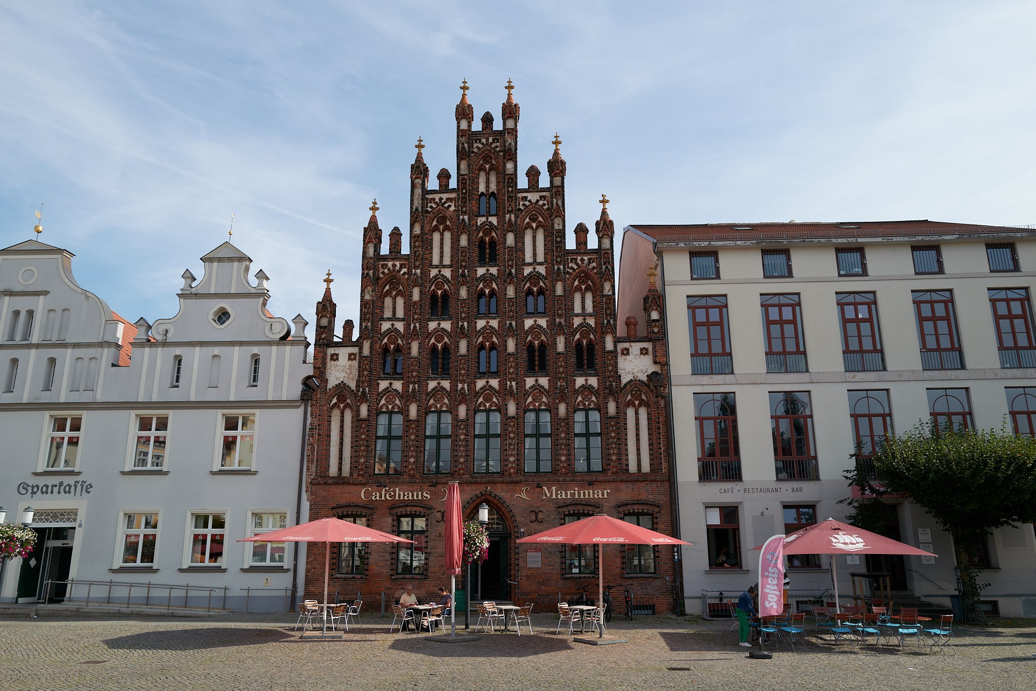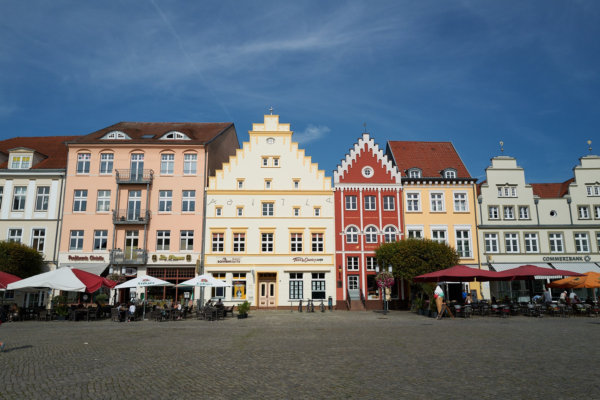 De reisgids beschrijft de universiteitsstad Greifswald als de metropool van het noorden. Groot is het stadje niet, maar het heeft wel een paar bijzondere gebouwen. Het marktplein is daarbij letterlijk en figuurlijk het middelpunt. We bewonderen daar de prachtige gevels die, zoals bijna gebruikelijk langs de Oostzeekust, allemaal in piekfijne staat zijn. Het is zondag, de winkels zijn gesloten, en het is lekker rustig in de stad. Alle tijd om op je gemak het centrum te bekijken. Doordeweeks kan je hier goed winkelen. Het winkelaanbod in het voetgangersgebied is aantrekkelijk en divers.