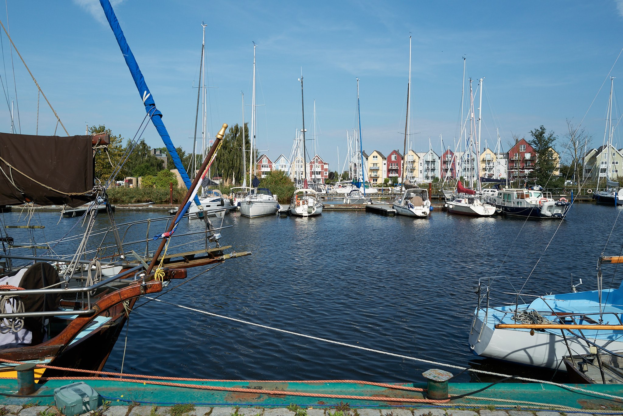 Vlak naast het oude centrum ligt de museumhaven. Hier liggen tal van antieke schepen, terwijl verderop de zeilschepen aanmeren. Op het aangrenzende Greifswalder Bodden zien we vandaag heel veel zeilboten. Het is namelijk prima zeilweer met een aangename temperatuur en een lekker windje.