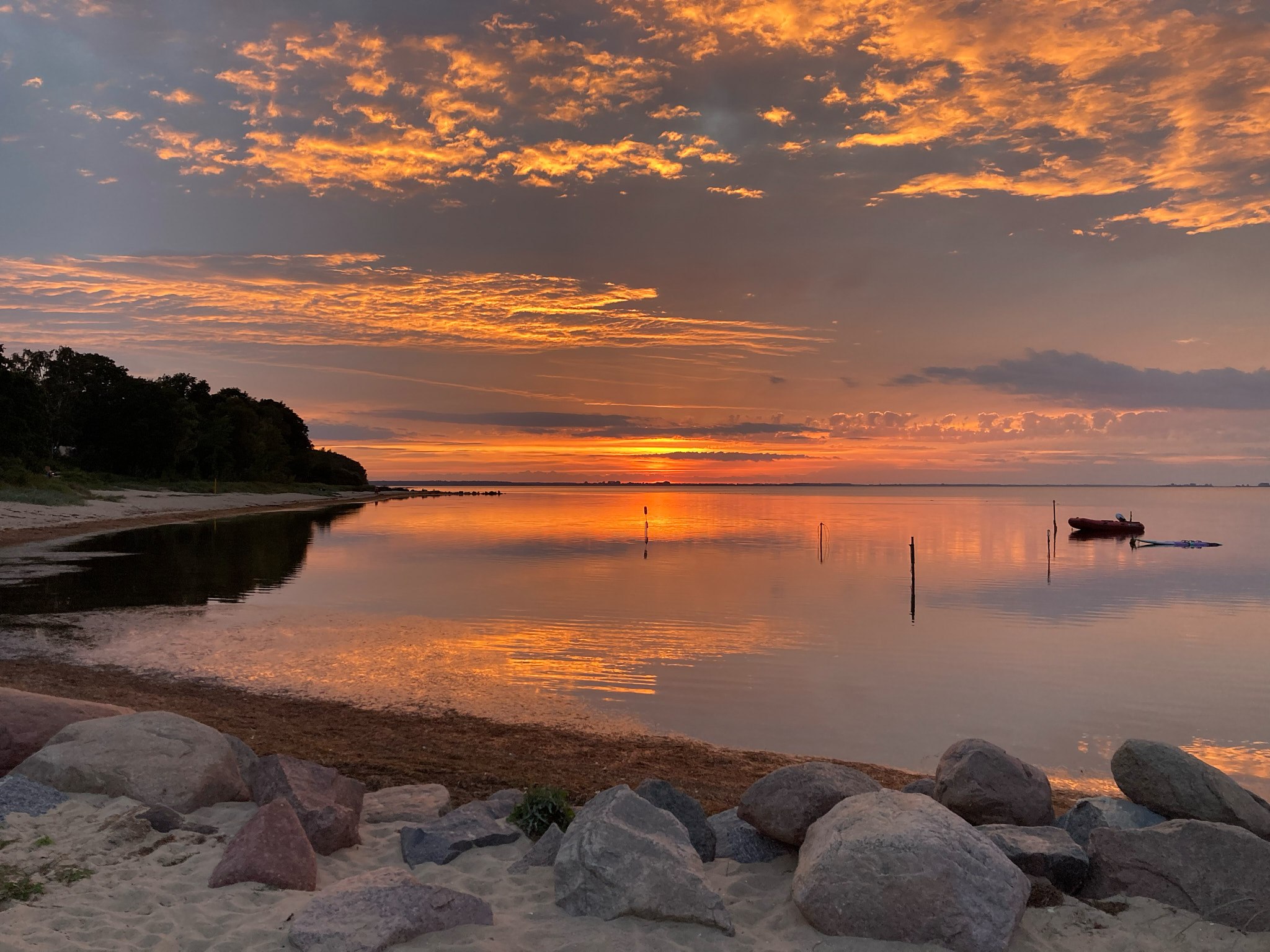 En dan aan het einde van de dag even genieten van een prachtige zonsondergang op het strandje bij de camping