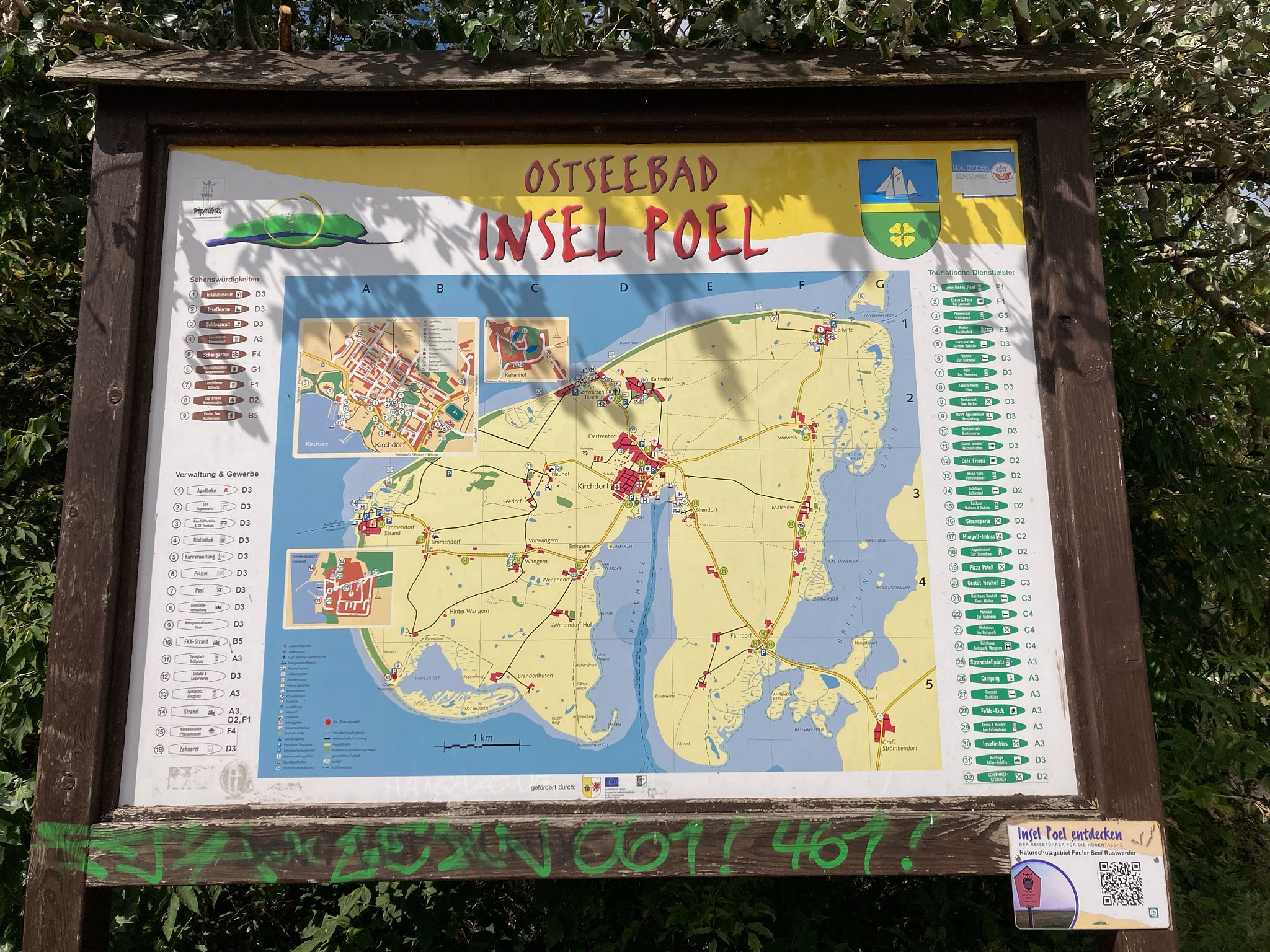 Vandaag staat een fietstocht op Insel Poel op het programma. Het is te ver om dat helemaal vanaf de camping te doen, dus de fietsen gaan achterin de auto. Het eiland is populair voor toeristen op de fiets, de meesten overigens op een e-bike maar dan wel met volle bepakking. Sommigen van hen zullen de lange afstandsroute langs de Oostzee doen.
