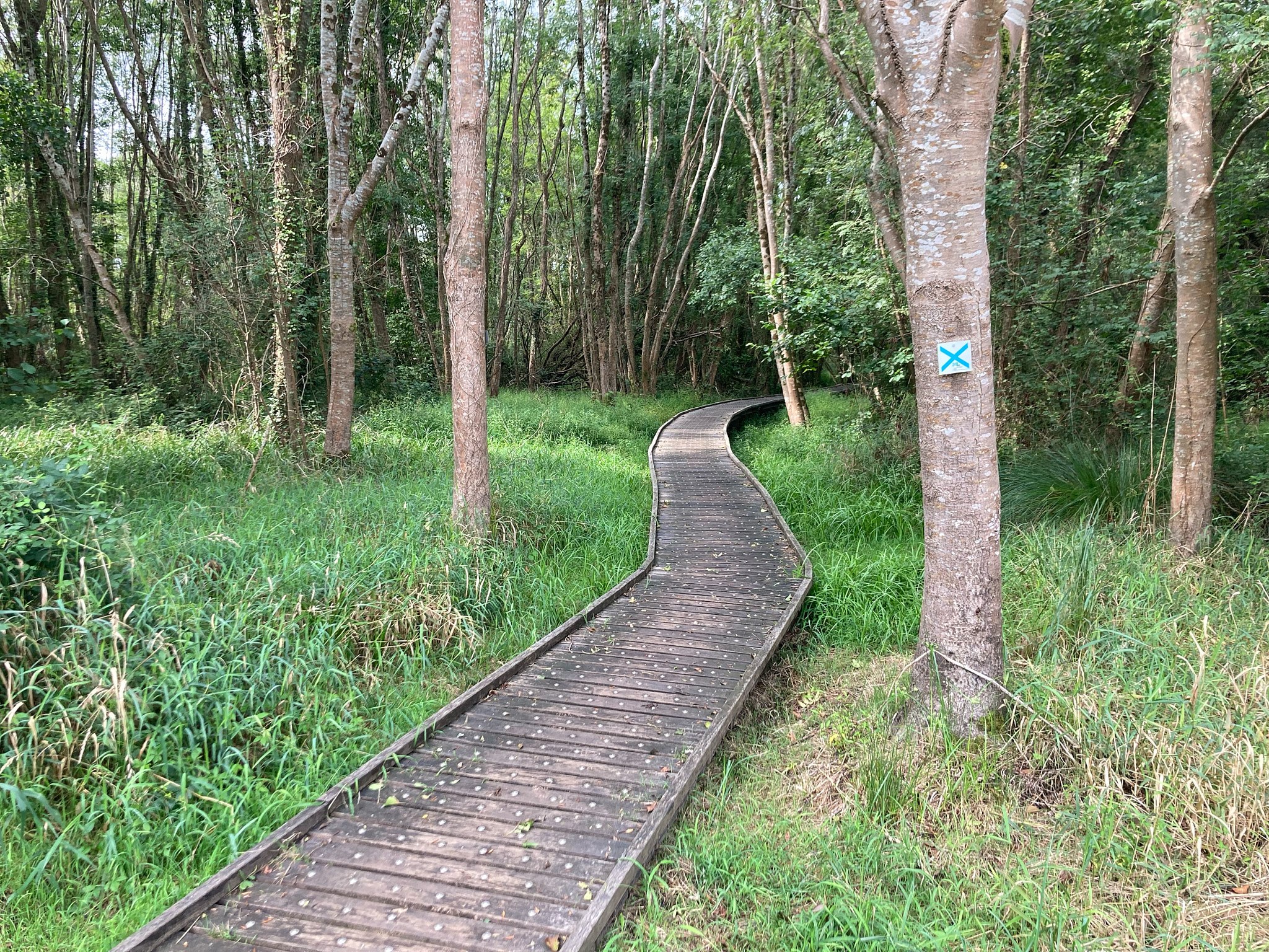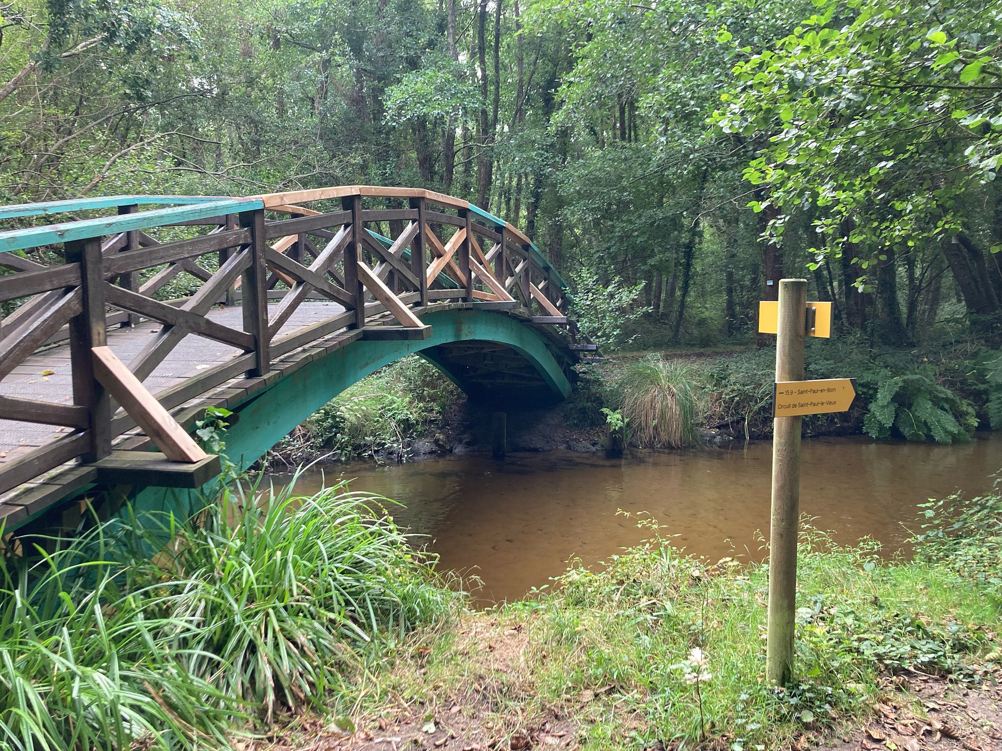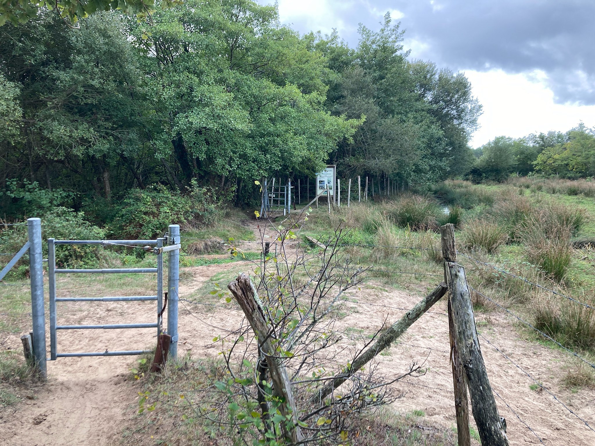 De eerste fietstocht vanaf de camping is een route langs het Étang d’Aureilhan. Er zitten een paar flinke technische stukken bij met enorme boomwortels, hoge bruggetjes en een lang pad over glibberige vlonders. Het gaat dwars door het bos dat regelmatig overstroomd raakt. Halverwege kwamen we langs een kleine schietbaan waar een groepje mannen kleiduiven aan het schieten waren. We hadden wel even willen meedoen. Met het vertrouwde geluid van de geweren op de achtergrond verder door naar het gedeelte met de zandpaden. Sommige stukken waren vrijwel niet te rijden, ook niet met de stand turbo van de ondersteuning. Je begrijpt dat je hier niemand tegenkomt behalve een sporadische wandelaar.