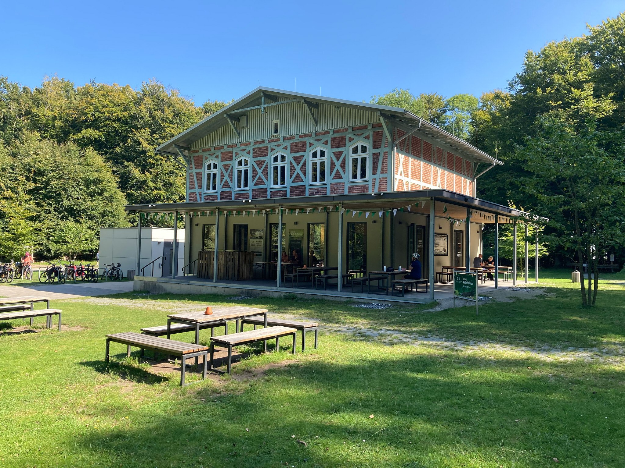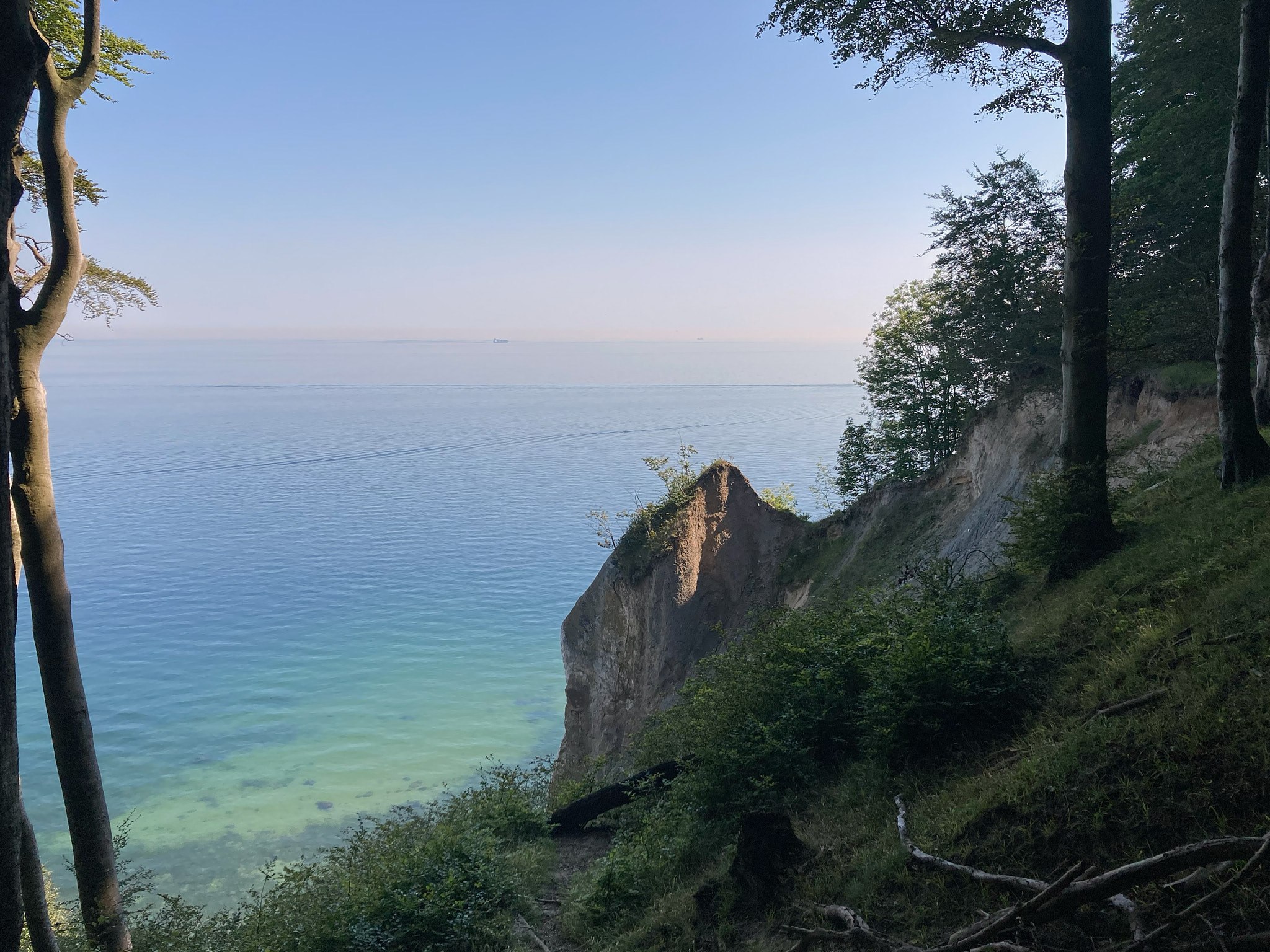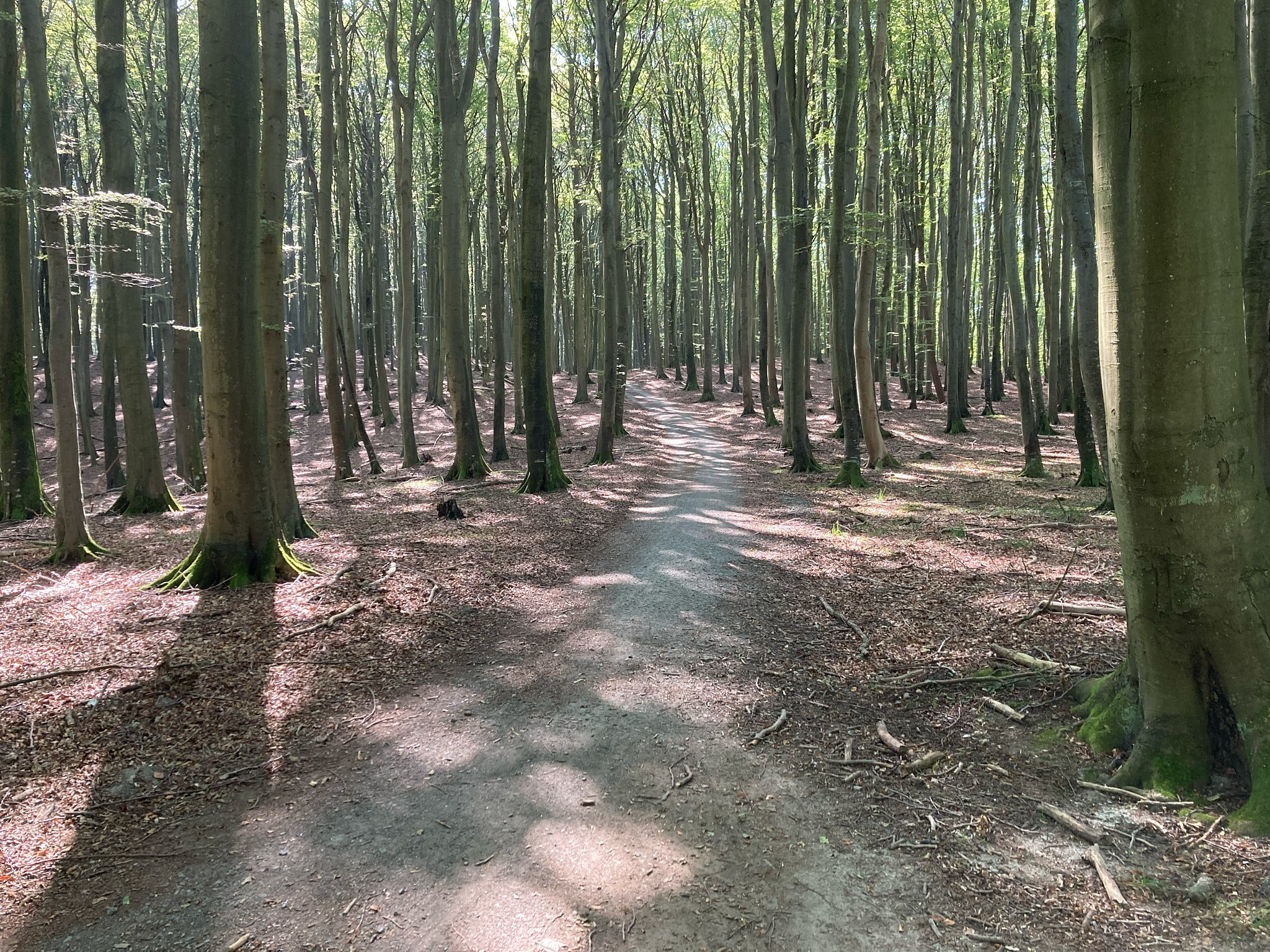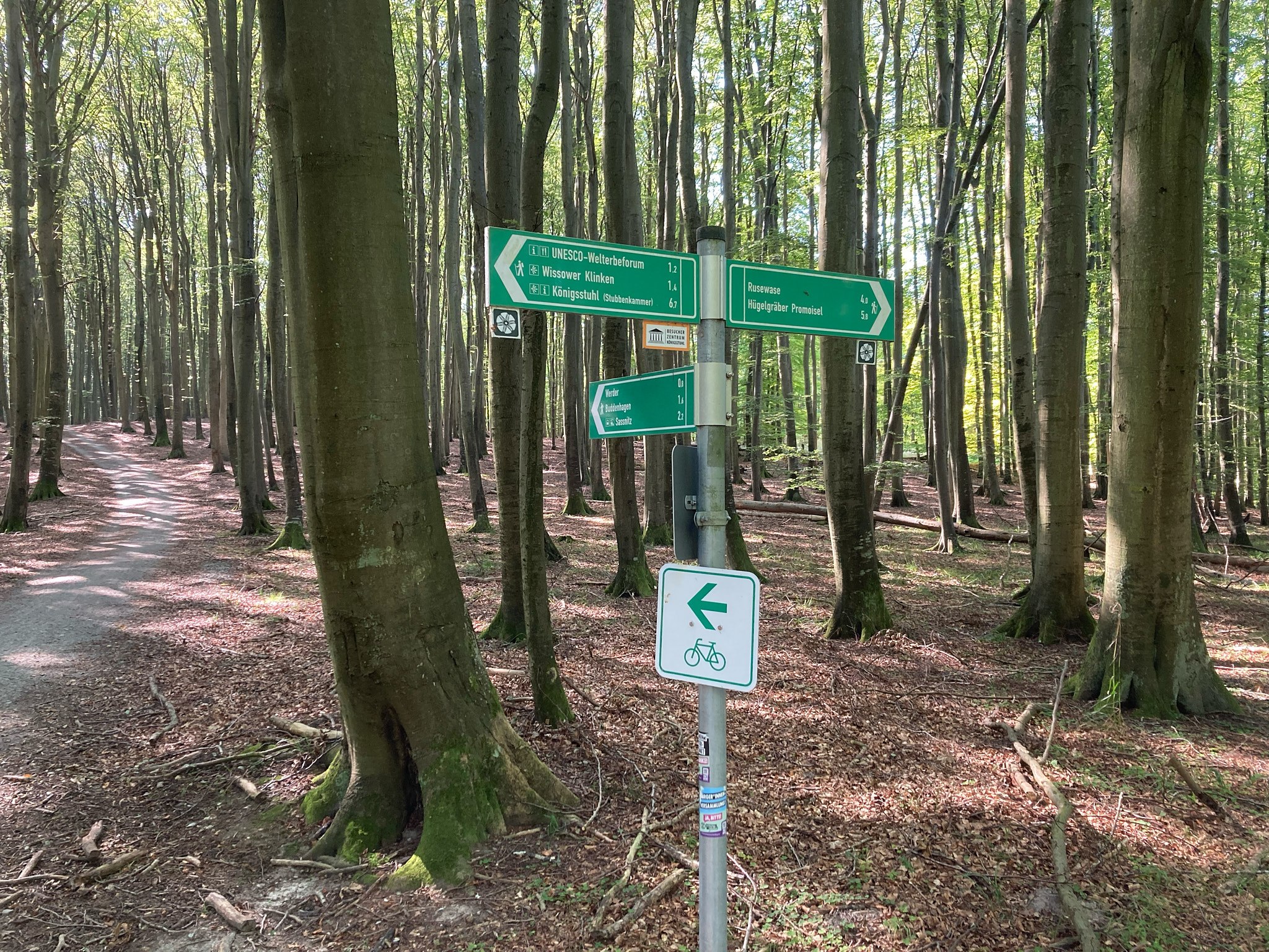 Vanaf de camping bij Lohme in het noordoosten van Rügen zijn we namelijk door het Nationalpark Jasmund gereden. Het was behoorlijk zwoegen door het heuvelachtige gebied. Bij elkaar hebben we over een afstand van 28 kilometer 450 hoogtemeters gepakt. In een enkel geval kon je door goed vaart te maken op de afdaling nét de volgende klim halen, maar we hebben er vandaag serieus voor moeten werken. Goed dat we in de schaduw van de bomen reden, in de zon zou het geen doen geweest zijn.