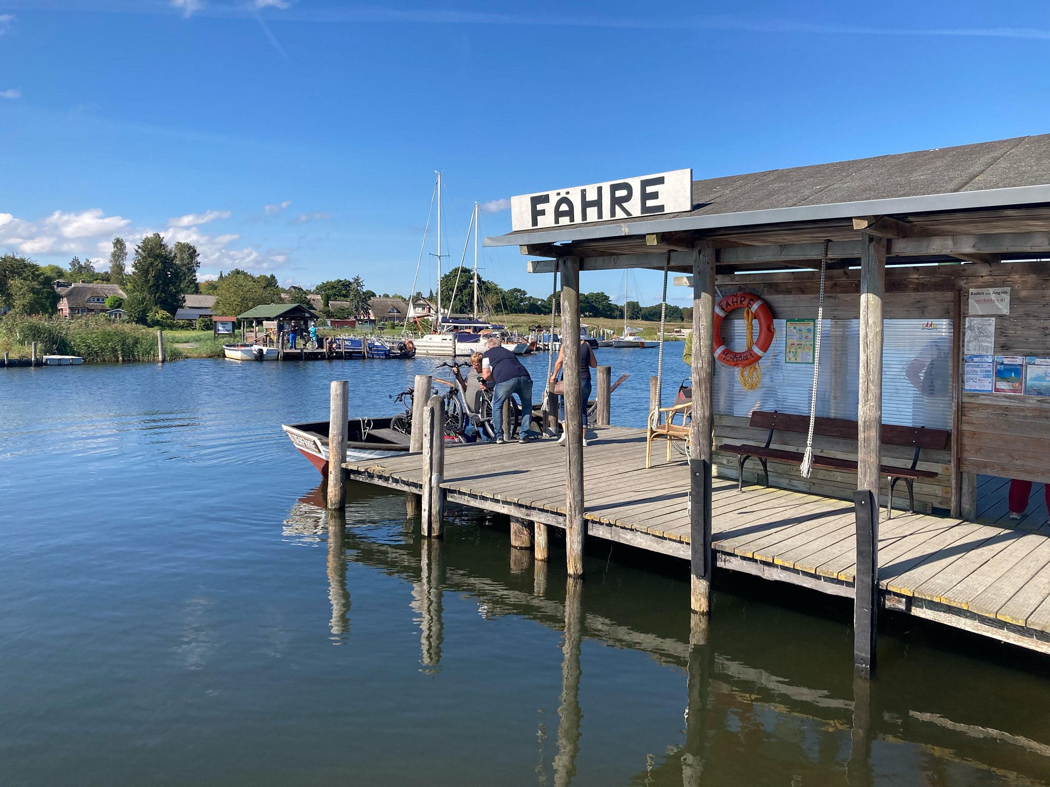 Als beloning wel prachtige indrukken opgegaan van het eiland. Als bijzonderheid noemen we ook de veerdienst bij Moritzdorf over het Baaber Bek. De roeiboot zet je met fiets en al over het 50 meter brede water. Per keer kan ie 6 mensen met fietsen meenemen of 15 voetgangers zonder fiets. De veerdienst bestaat al sinds 1891 en is alleen gesloten in januari en februari. Je begrijpt dat de veerman goed gespierd is.
