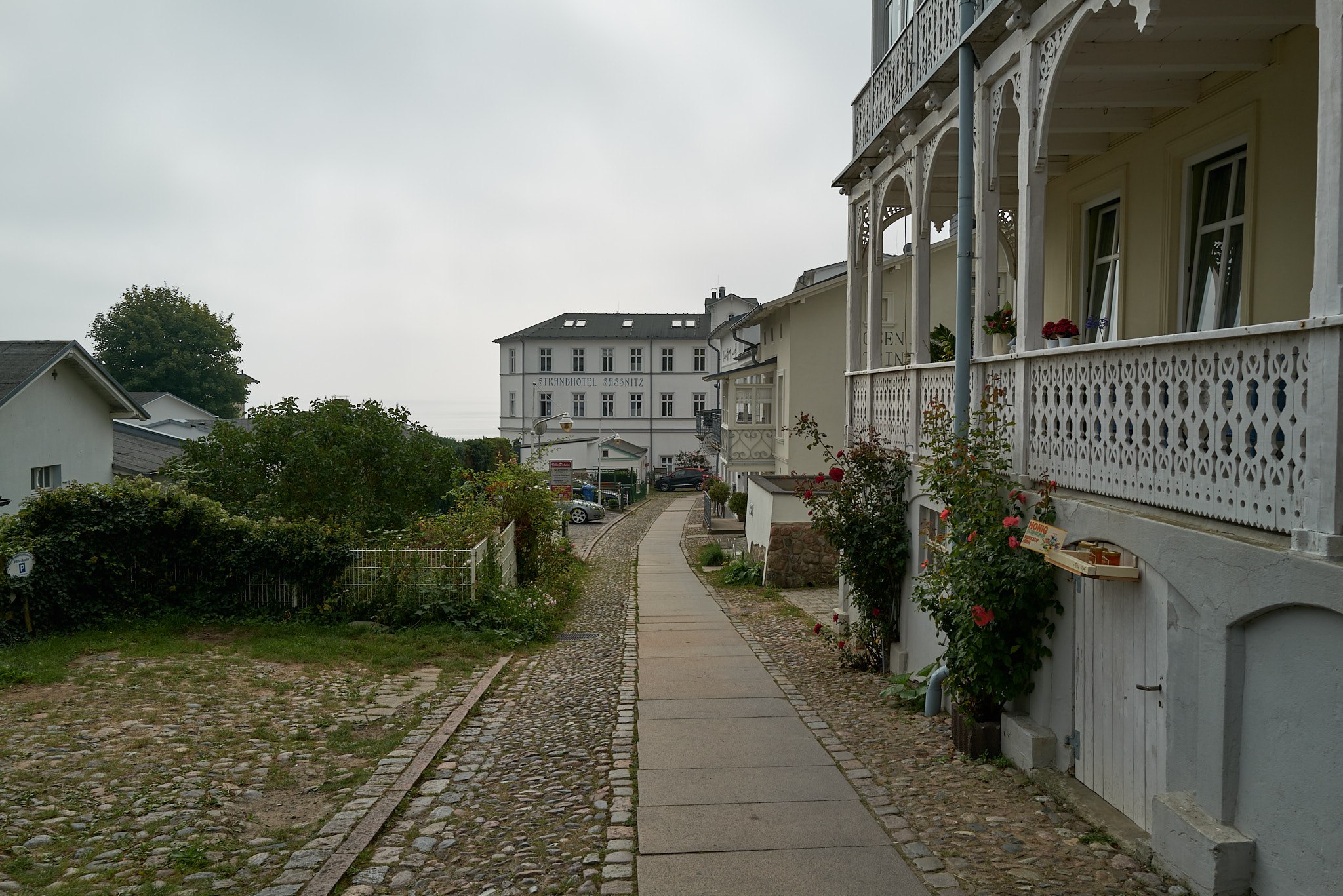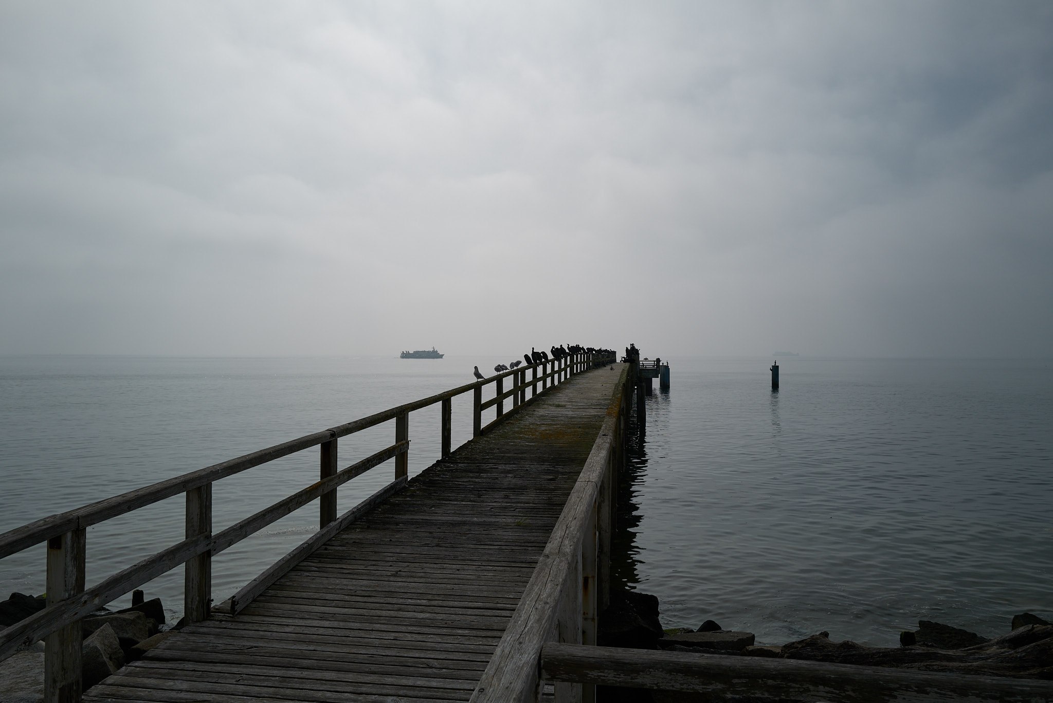 In de haven van Sassnitz lag ooit de grootse vissersvloot van de DDR. Nu is het een toeristisch stadje met een mengeling van historische panden en nieuwbouw uitgevoerd in strakke moderne architectuur. Doordat het op zee wat mistig is hangt er hier een enigszins mystieke sfeer. De aalscholvers die zich op de pier opwarmen in het magere zonnetje dragen hieraan bij net als het gedempte geluid van de motoren van de passerende schepen in de verte.