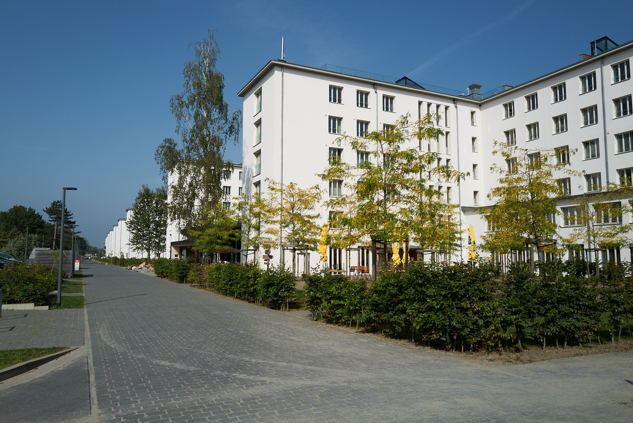 Alles bij elkaar is er nog heel wat werk aan de winkel om er een aantrekkelijk geheel van te maken. Wij vonden het namelijk nogal sfeerloos. Er zijn, als je de fietsers niet meetelt, niet veel mensen op straat en er is afgezien van de enorme gebouwen niet veel te zien. Ook de verbinding met het duingebied en de zee ontbreekt. Die ligt namelijk aan de achterkant van het complex waar geen verkeer kan komen. Maar je krijgt hier natuurlijk wel een inkijkje in de historie van deze plek en dat is zeker de moeite waard.