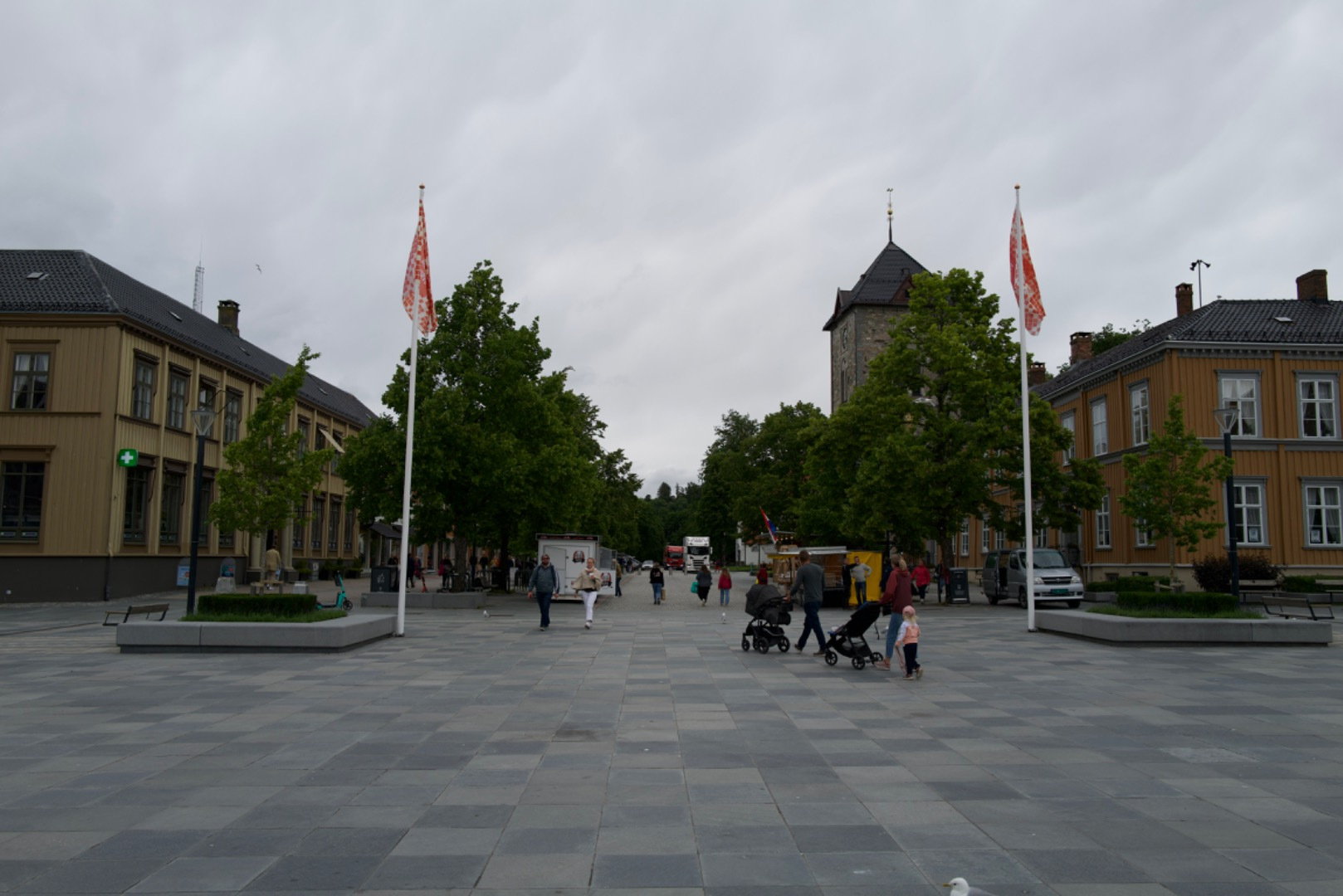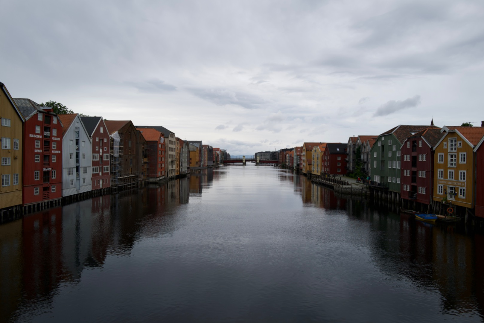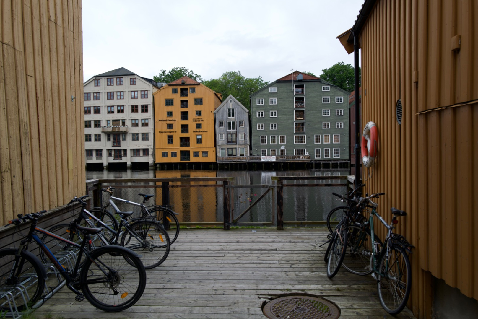 Een wandeling langs de Nidelva rivier hoort uiteraard bij een bezoek aan deze stad. Je komt dan vanzelf ook bij de wijk Bakklandet uit waar nog veel historische houten gebouwen staan. Het lijkt een wijk te zijn waar veel studenten wonen gelet op de vele fietsen tegen de gevels en een hele rij namen bij de voordeur. Trondheim is een universiteitsstad.