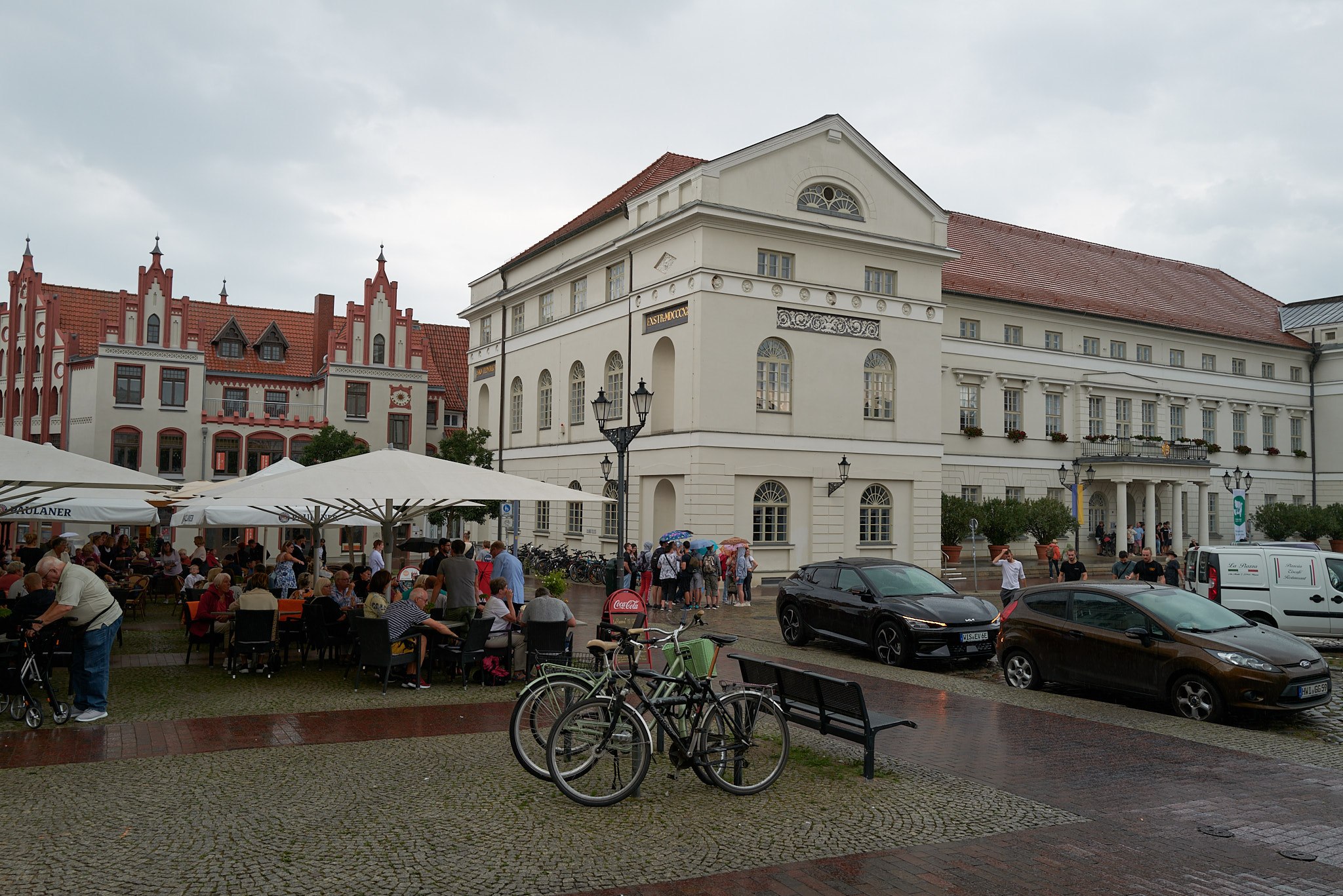 Wismar is een haven- en handelsstad die op de werelderfgoedlijst staat. Die gaan we dus een bezoekje brengen. De camping eigenaar had aangeraden niet met de auto naar Wismar te gaan, maar omdat we gisteren al een stevige fietstocht hadden gemaakt, hebben we toch gekozen voor de vierwieler. Bovendien weet je niet of je je fiets veilig kunt stallen.